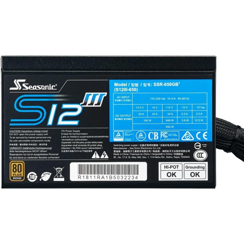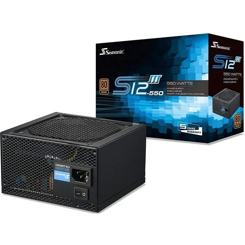 SERIE S12III: La serie S12III Bronze está disponible en el factor de forma ATX estándar y en las potencias más comunes para un sistema de PC. La Serie S12III Bronze de Seasonic alcanza el estándar 80 PLUS® Bronze al proporcionar al menos un 82 %, 85 % y 82 % de eficiencia en el uso de la energía a cargas operativas del 20 %, 50 % y 100 %, respectivamente. Esta eficiencia, combinada con la corrección activa del factor de potencia, permite a las fuentes de alimentación de la serie S12III Bronze reducir el derroche de energía, lo que se traduce en un ahorro de costes energéticos para sus usuarios. Además de ser enormemente eficientes, las unidades S12III utilizan el diseño de convertidor resonante LLC y el control de ventilador inteligente y silencioso (S2FC) líder del sector.
