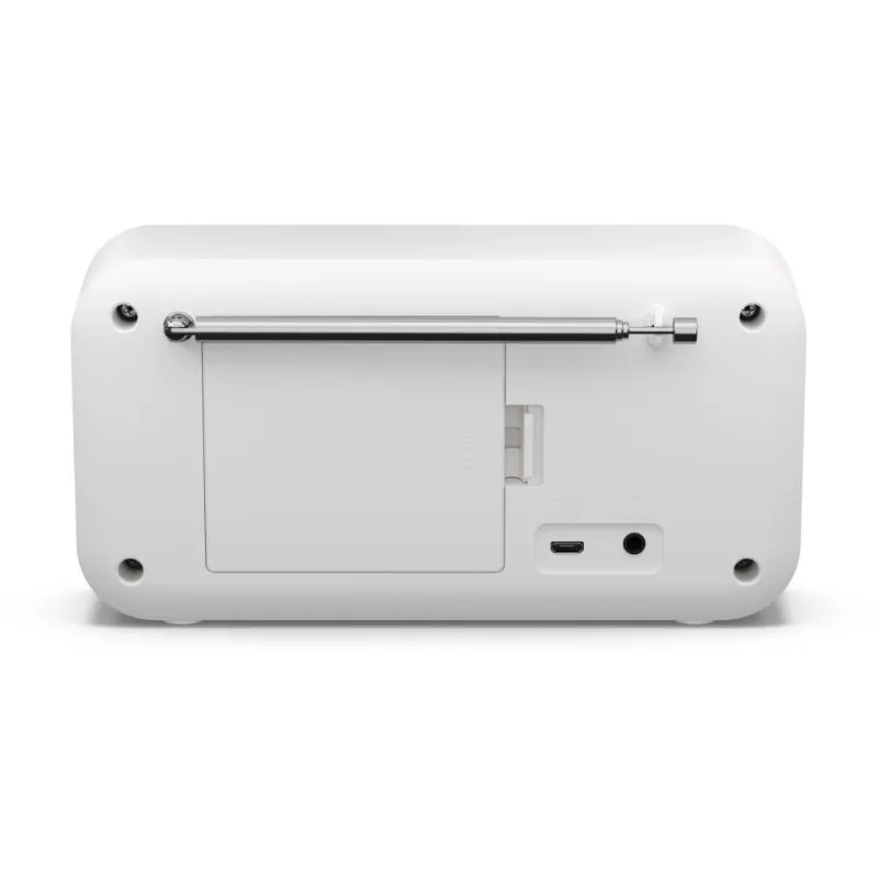 COMPACTA Y PORTÁTIL: Radio DAB+/DAB/FM compacta y portátil con transmisión de música inalámbrica por Bluetooth, alimentada por USB o batería.