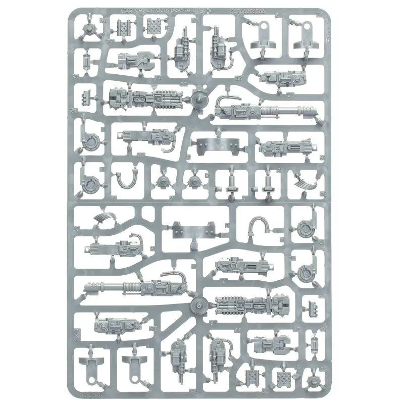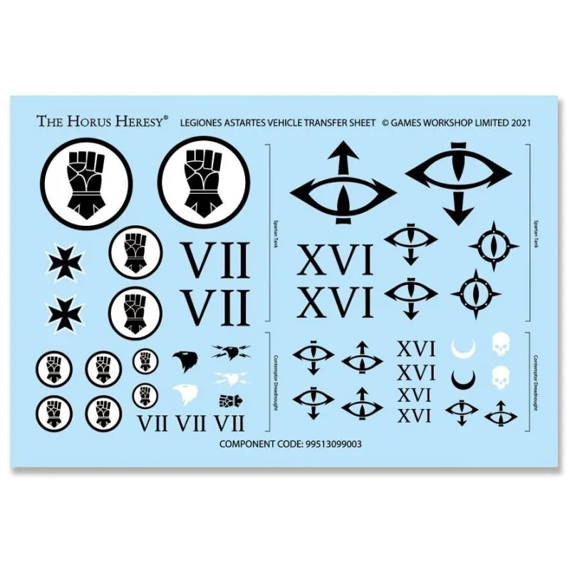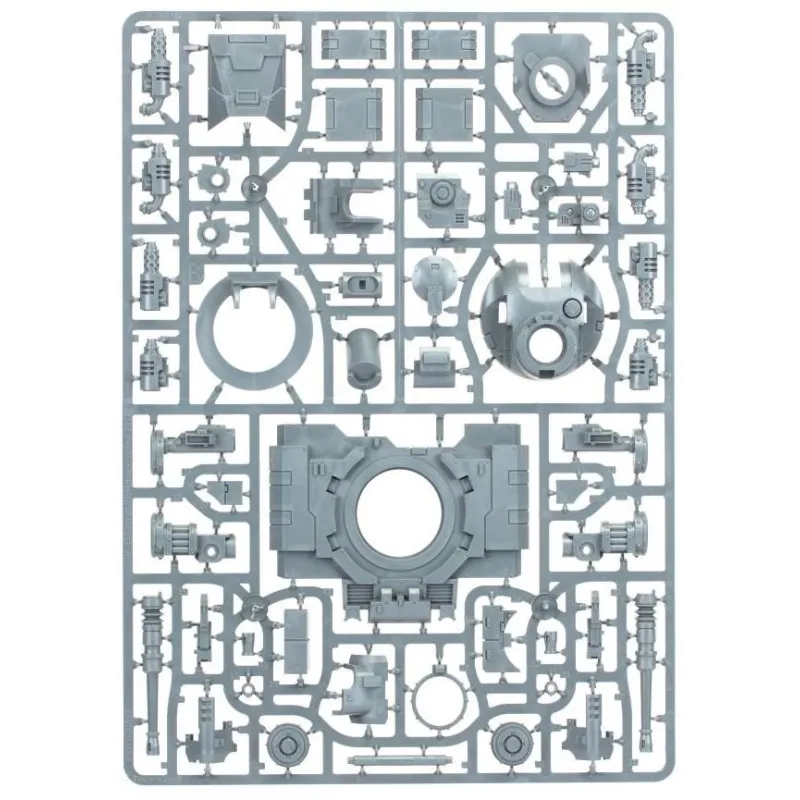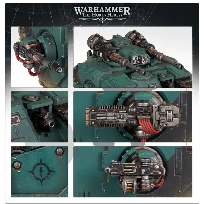 Este kit comprende 204 componentes de plástico y se suministra con una hoja de transferencia de vehículos de las Legiones Astartes que contiene 44 marcas e iconos opcionales para las Legiones de los Hijos de Horus y los Puños Imperiales. Esta miniatura se suministra sin pintar y requiere montaje; recomendamos usar pegamento plástico Citadel y pinturas Citadel.