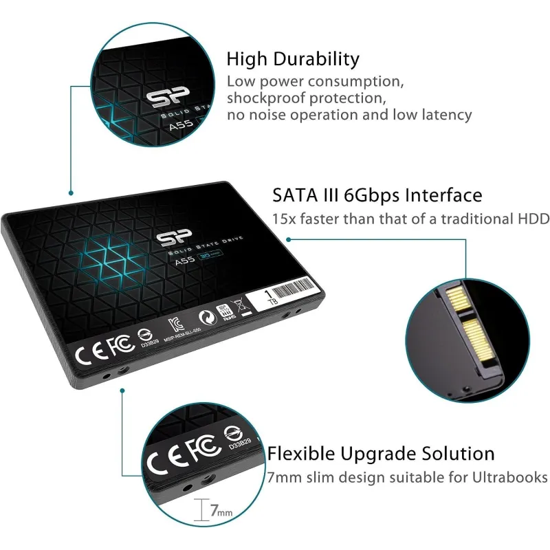 SILICON POWER ACE A55: Silicon Power Ace A55. SDD, capacidad: 1 TB, Factor de forma de disco SSD: 2.5", Velocidad de transferencia de datos: 6 Gbit/s, Componente para: PC