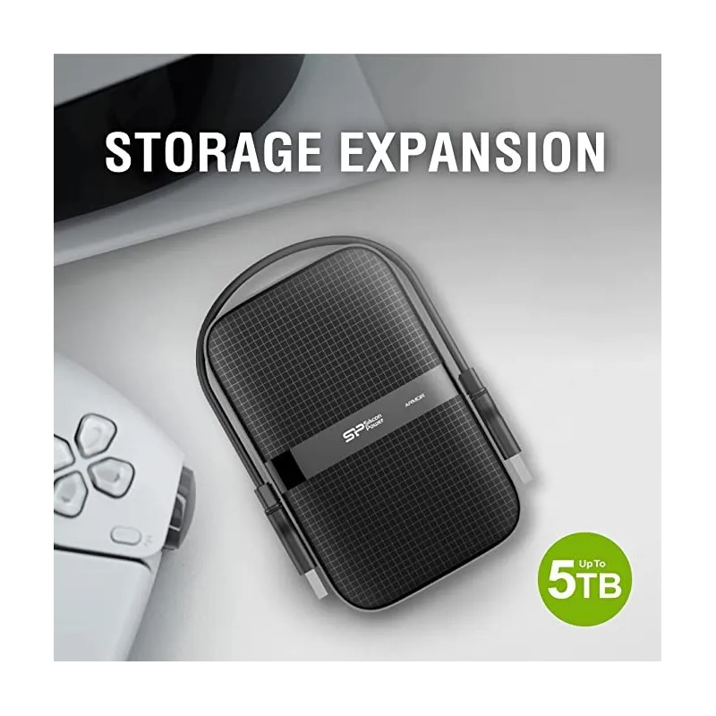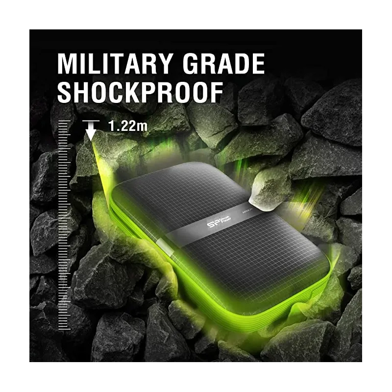 ALMACENA SIN MIEDO: Si buscas un disco duro externo que te ofrezca seguridad, velocidad y capacidad, no busques más. El disco duro portátil Armor A60 de Silicon Power es la solución perfecta para tus necesidades de almacenamiento. Con una resistencia a los golpes de grado militar, una protección contra salpicaduras de agua y un diseño antideslizante y antiarañazos, este disco duro te permitirá guardar todos tus datos sin miedo a perderlos o dañarlos. Además, gracias a su interfaz USB 3.2 Gen 1, podrás transferir archivos de gran tamaño en cuestión de segundos. Y no te preocupes por la compatibilidad: el Armor A60 funciona con ordenadores PC y Mac, e incluso con consolas de juegos.