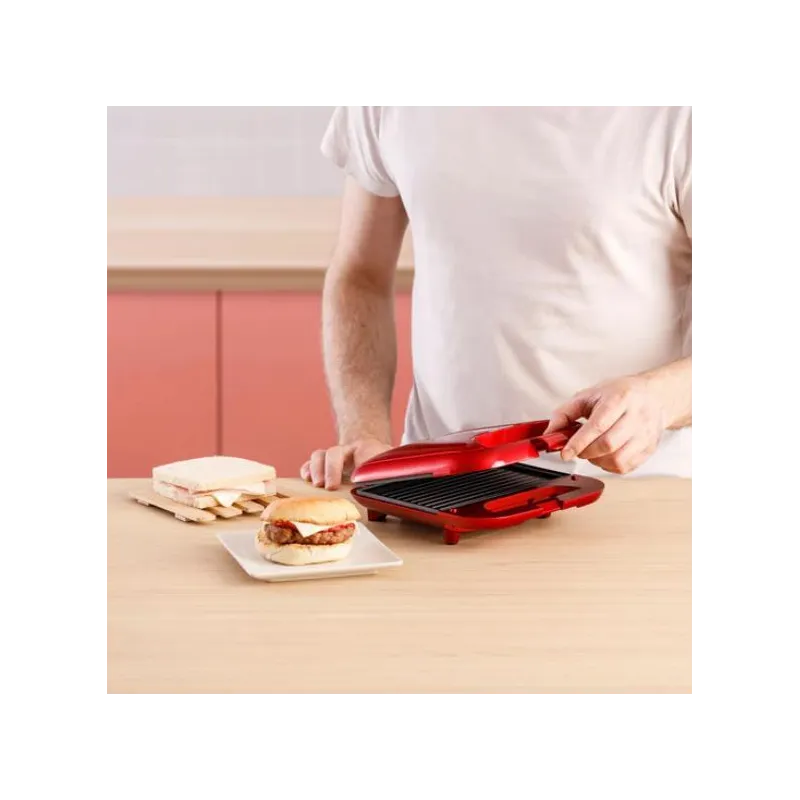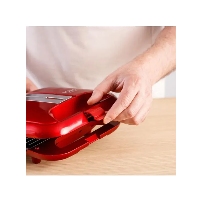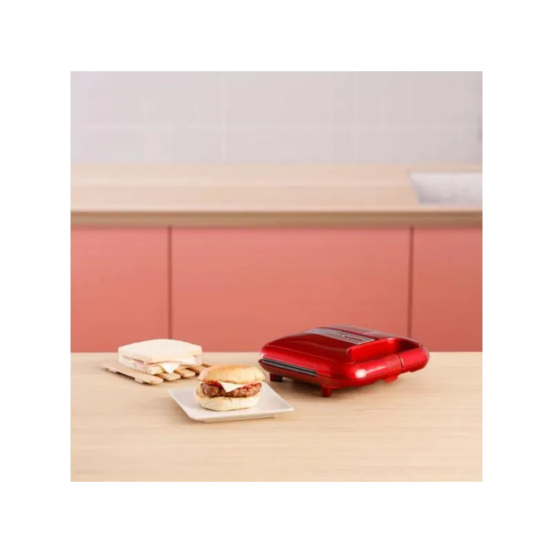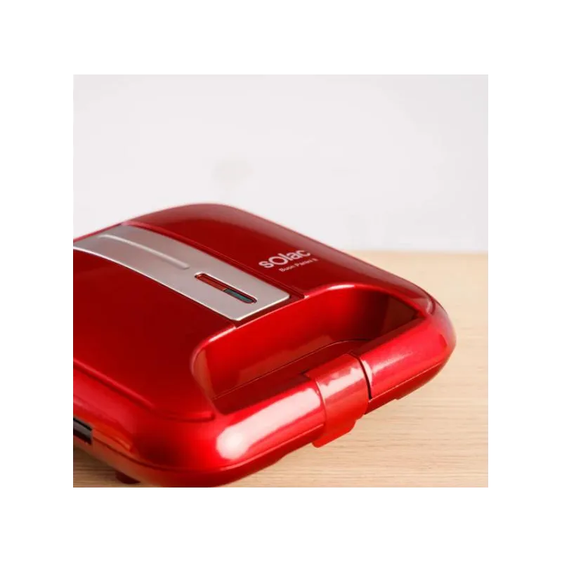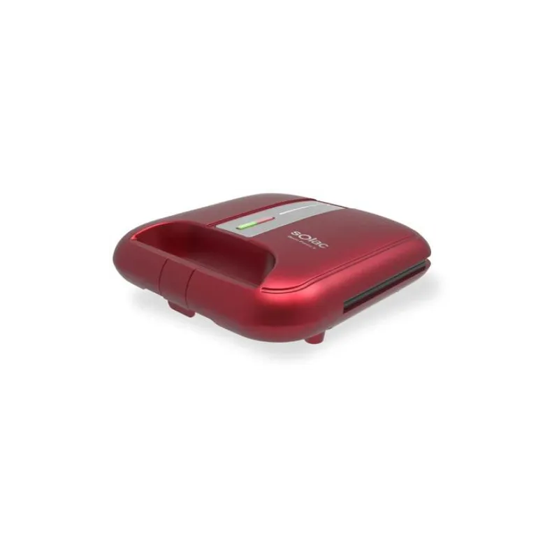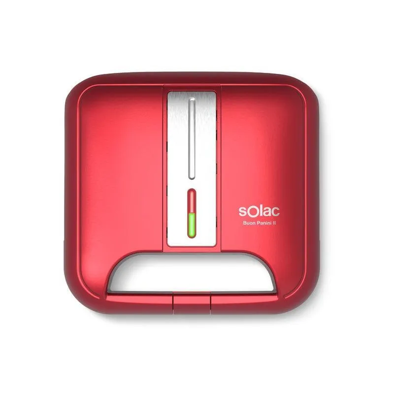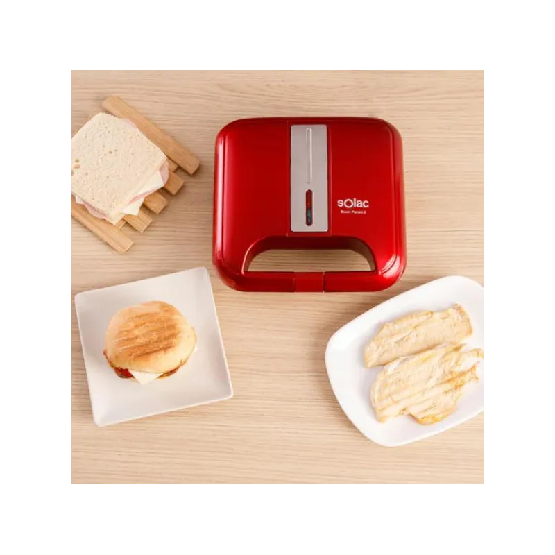 Parrilla Solac Buon Panini II, Potencia de 750 W, Tapa Bloqueable, Luces de Indicación, Fácil de Limpiar Color Rojo