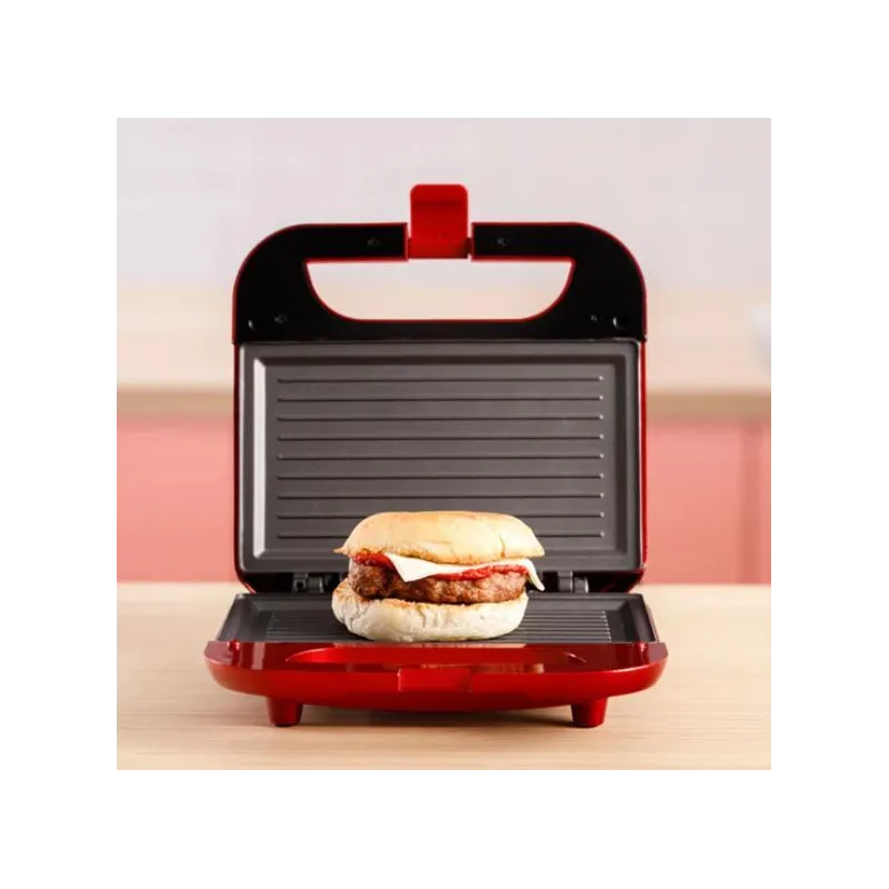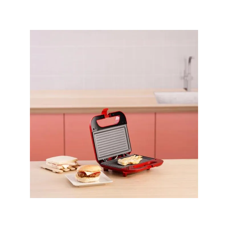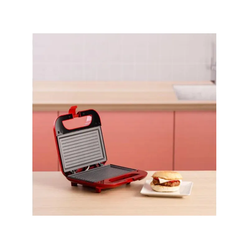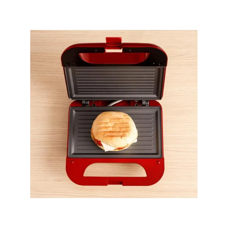 Parrilla Solac Buon Panini II, Potencia de 750 W, Tapa Bloqueable, Fácil de Limpiar Color Rojo
