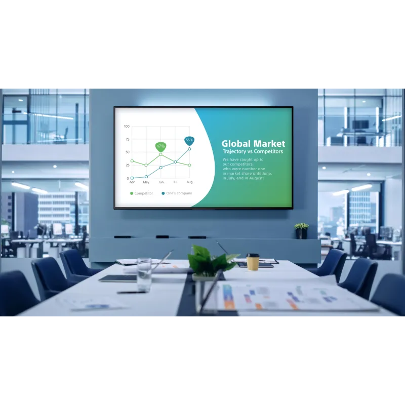 AMIGABLE PARA LOS NEGOCIOS CON FÁCIL COMPARTICIÓN DE CONTENIDO, CONTROL Y PERSONALIZACIÓN: Ideal para señalización digital y aplicaciones corporativas, la delgada y fácil de usar Pantalla Profesional FW-43EZ20L añade impacto a todas tus comunicaciones visuales. La muy alta calidad de imagen 4K con un brillo de pantalla de 350 nits se complementa con una configuración simple, compartición de contenido y control en red, ideal para los entornos AV conectados de hoy en día.