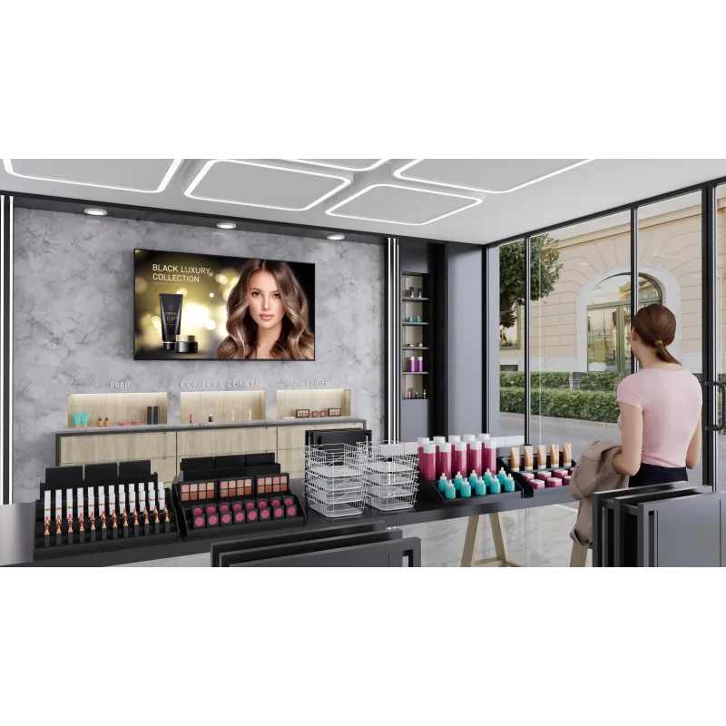 FLEXIBILIDAD DE INSTALACIÓN PARA CADA ENTORNO: El diseño elegante y minimalista de la Serie FW-55BZ40L aporta un estilo impecable a cualquier entorno empresarial. Las líneas elegantes de la pantalla se ven aún más realzadas por toques prácticos para una integración sin problemas en tiendas minoristas, colegios y espacios de trabajo corporativos.