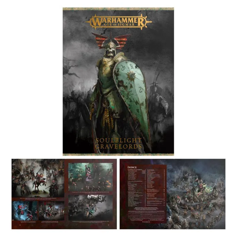 Incluye varias miniaturas de plástico multicomponente con gran nivel de detalle, todas compatibles con las reglas de Soulblight Gravelords en la edición actual de Age of Sigmar. Viene en castellano, lo que facilita aprender las reglas y usar las hojas de datos en mesas de juego locales y clubes de España.