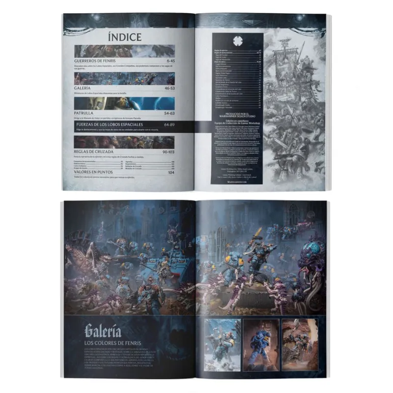 El material de reglas del Warhammer Space Wolves Army Set está en español.