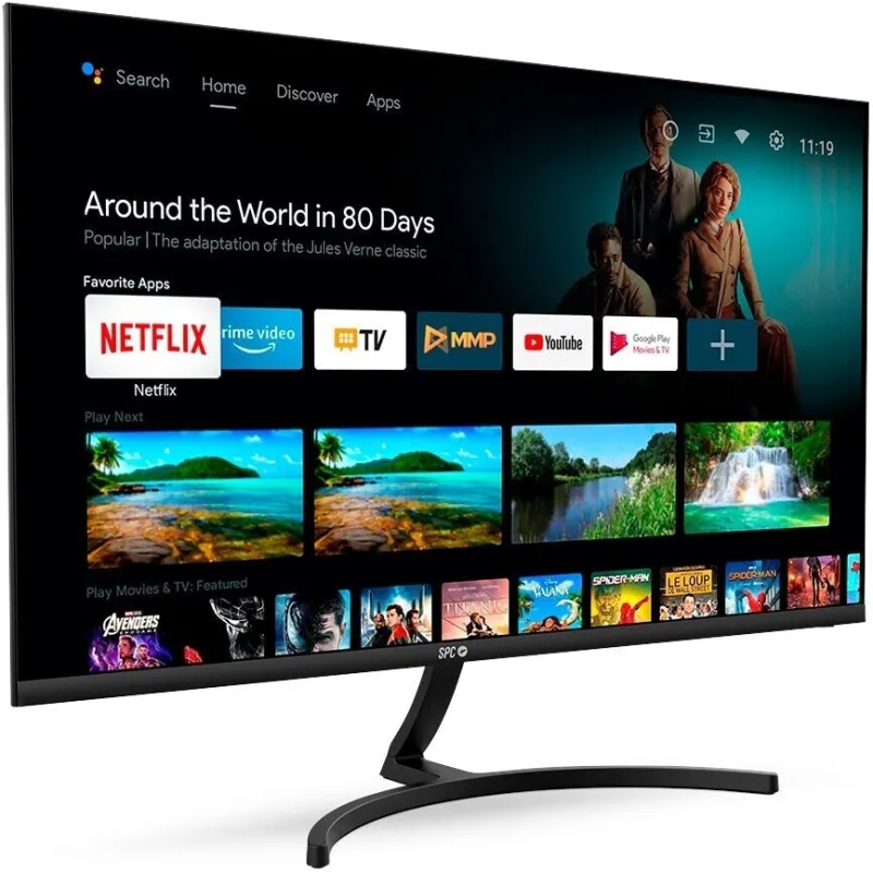 Pero eso no es todo, el SPC Smart Monitor es más que una pantalla; es un centro de entretenimiento inteligente. Equipado con Android TV, permite acceder a tus aplicaciones favoritas como Netflix, Youtube, y Prime Video directamente desde el monitor. La interacción por voz y el Asistente de Google integrados transforman tu forma de interactuar con tu contenido, mientras que la función Chromecast te permite compartir tus momentos favoritos directamente desde tu móvil a la pantalla.