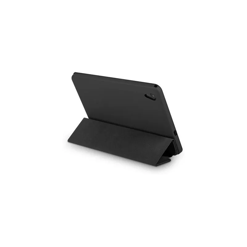 Además, la tapa protectora de pantalla es plegable y actúa como un atril. Es decir, que se convierte en un cómodo soporte para leer, hacer videollamadas o ver una película dejando a su vez tus manos libres para hacer otra tarea en paralelo como cocinar o tomar apuntes.