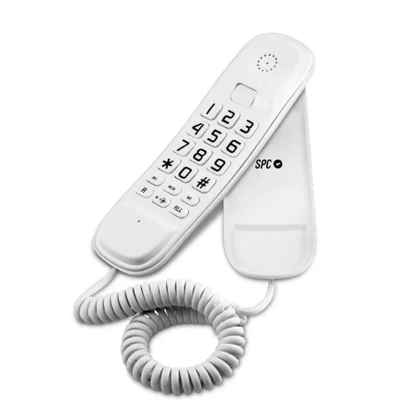 SPC ORIGINAL LITE 2: Teléfono fijo compacto, sencillo y elegante con teclas grandes, indicador luminoso de llamada entrante, 10 memorias indirectas y función rellamada. Úsalo como teléfono de sobremesa o instálalo en la pared