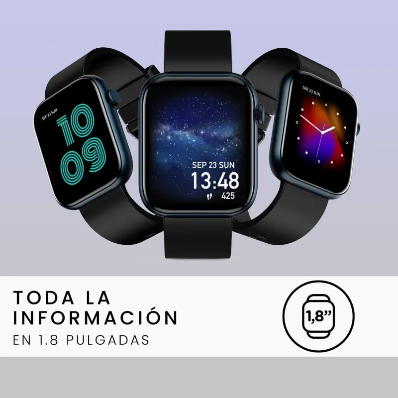 UN RELOJ QUE SE ADAPTA A TU ESTILO: ¿Te gustaría tener un reloj inteligente que pudieras personalizar según tu gusto y tu estado de ánimo? Con este reloj, podrás hacerlo. Cuenta con dos correas intercambiables de diferentes colores: negro y azul. Así, podrás combinarlo con tu ropa, tu accesorios o tu humor. Además, tiene varios diseños de pantalla para que elijas lo que quieres ver y cómo lo quieres ver. Desde una interfaz sencilla con la hora y la fecha, hasta una más completa con los pasos, las calorías y el clima. Tú decides cómo lucir tu reloj.