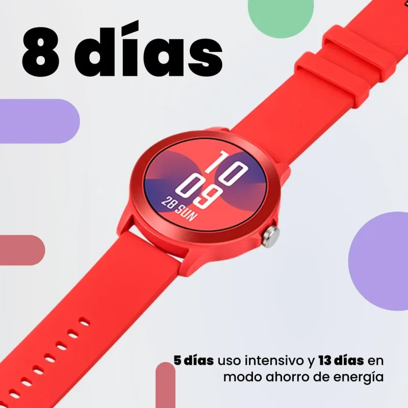 SMARTEE DUO VIVO luce esfera redonda, corona funcional, pantalla de 1,27” y un vibrante color POP que nos devuelve a la época más divertida de la moda ochentera.