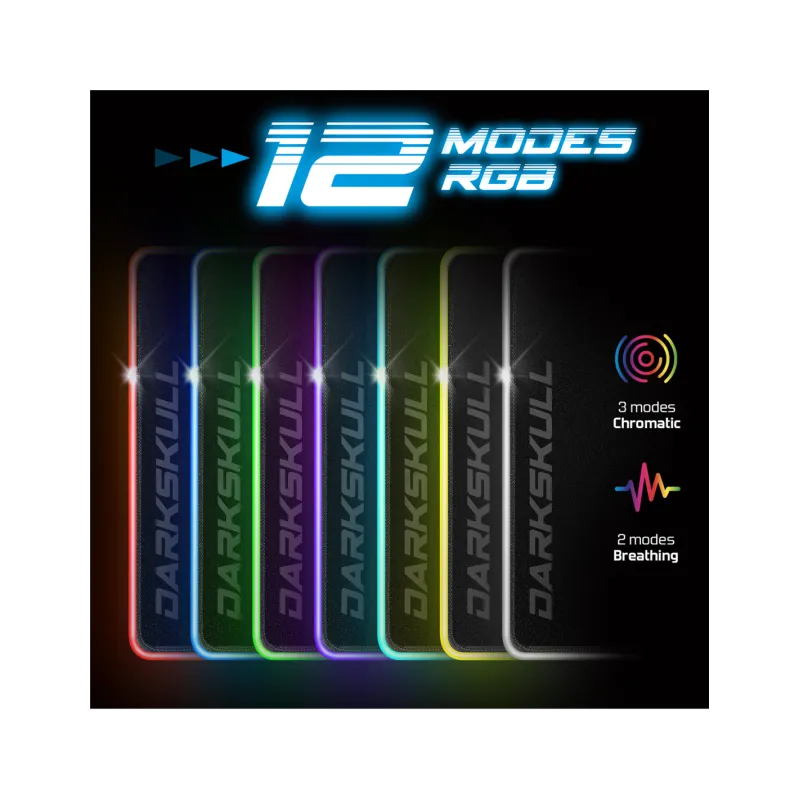 DARSKULL HUB RGB XXXL: La alfombra DARSKULL HUB RGB TAILLE XXXL mide 90 x 40 centímetros, para un grosor de 4 millimetres.it ofrece suficiente espacio para alojar el ratón y el teclado. Desarrolladas y probadas por nuestro equipo de jugadores, las alfombras darksull son compatibles con sensores ópticos y láser.