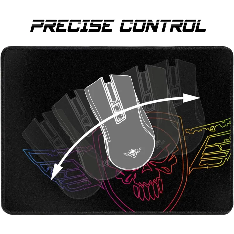 La Spirit of Gamer Darkskull M apunta a lo esencial: tamaño compacto de 33 x 24 cm, superficie textil en micro-malla y base de goma antideslizante. Si tu prioridad es un control consistente sin llenar la mesa, es una elección sensata para juego y trabajo.