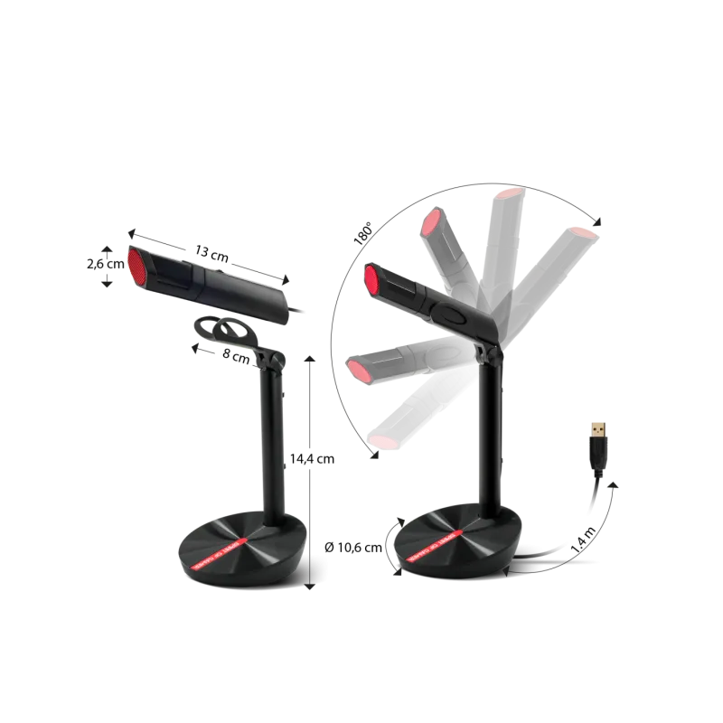 MICRÓFONO DESMONTABLE: ¡eko no es solo un micrófono! su base está colocada para una estabilidad perfecta y equipada con almohadillas antideslizantes. su varilla es ajustable y el micrófono desmontable.