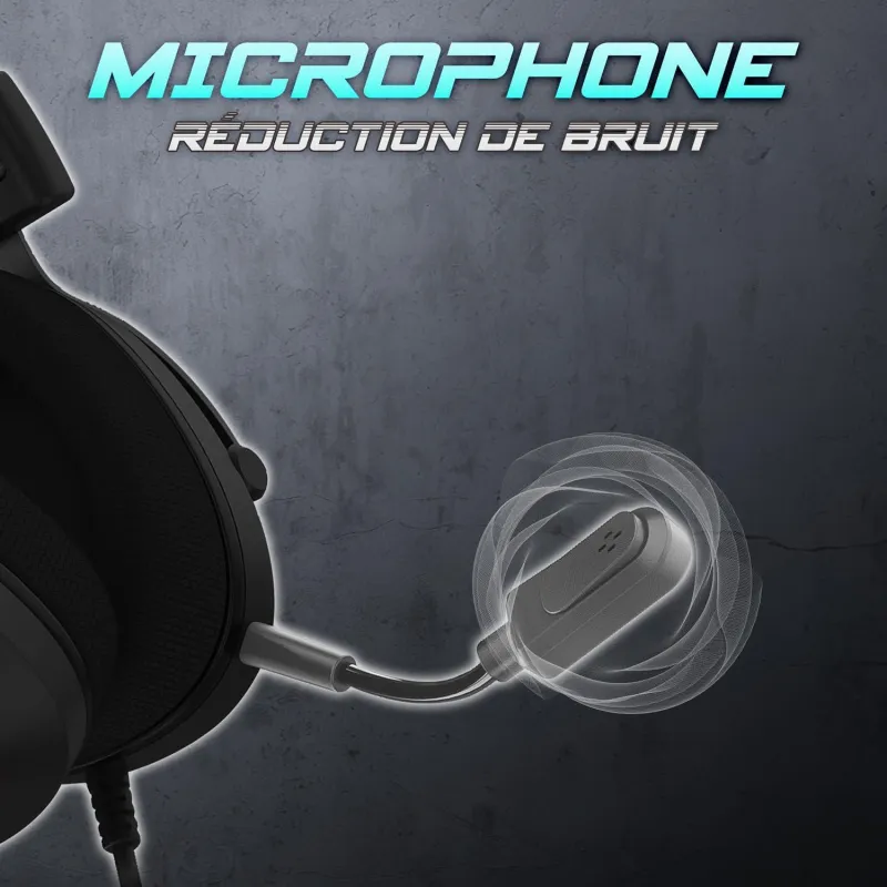 En cuanto al audio, estos auriculares cuentan con altavoces de 50 mm con imanes de neodimio, ofreciendo un nivel de presión acústica (SPL) de 115 dB y una respuesta de frecuencia de 20Hz a 20KHz, lo que garantiza un sonido nítido y potente. El micrófono omnidireccional con una sensibilidad de -38 dB y una respuesta de frecuencia de 50Hz a 10KHz asegura una comunicación clara durante las sesiones de juego.