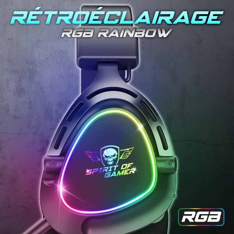DISEÑO CÓMODO Y RETROILUMINACIÓN RGB: Con un peso de sólo 230 gramos, los auriculares Spirit of Gamer Elite H40 tienen una diadema de aluminio ajustable en altura y auriculares basculantes para un ajuste perfecto. Con almohadillas y diadema de tela, disfrutarás de una menor sensación de calor gracias a una mejor transpirabilidad. Además, el diseño robusto de los auriculares significa que durarán más. Además, los auriculares incorporan retroiluminación RGB con efecto de respiración arco iris, para que puedas añadir un toque de estilo a tu configuración. La retroiluminación se alimenta a través de un puerto USB.