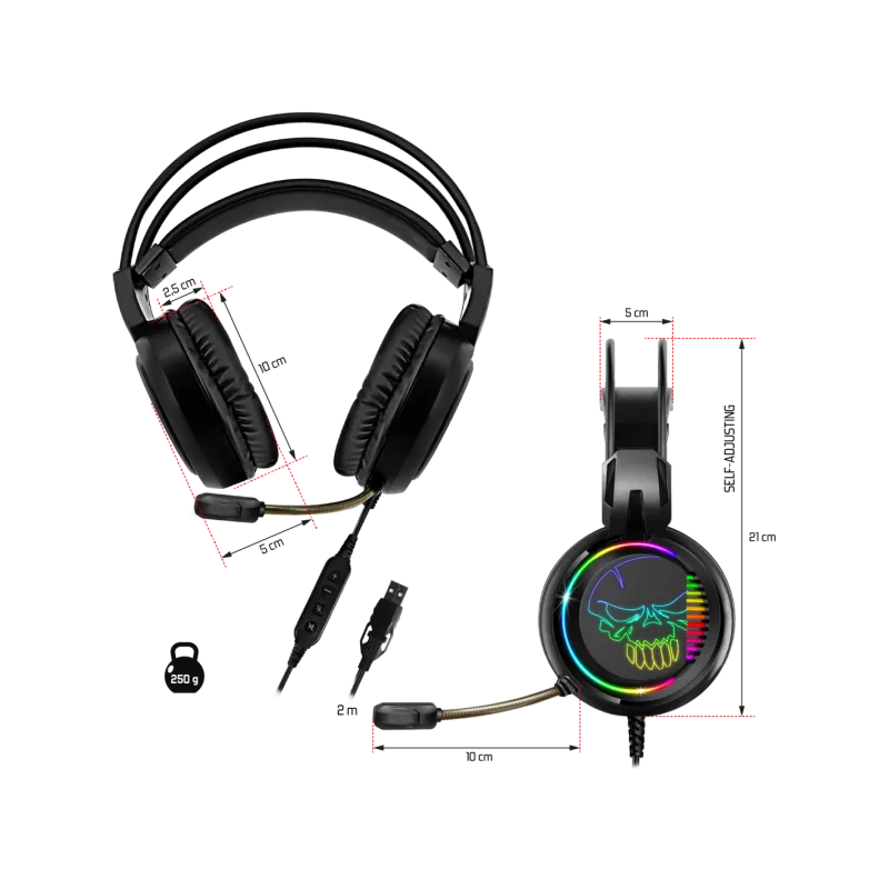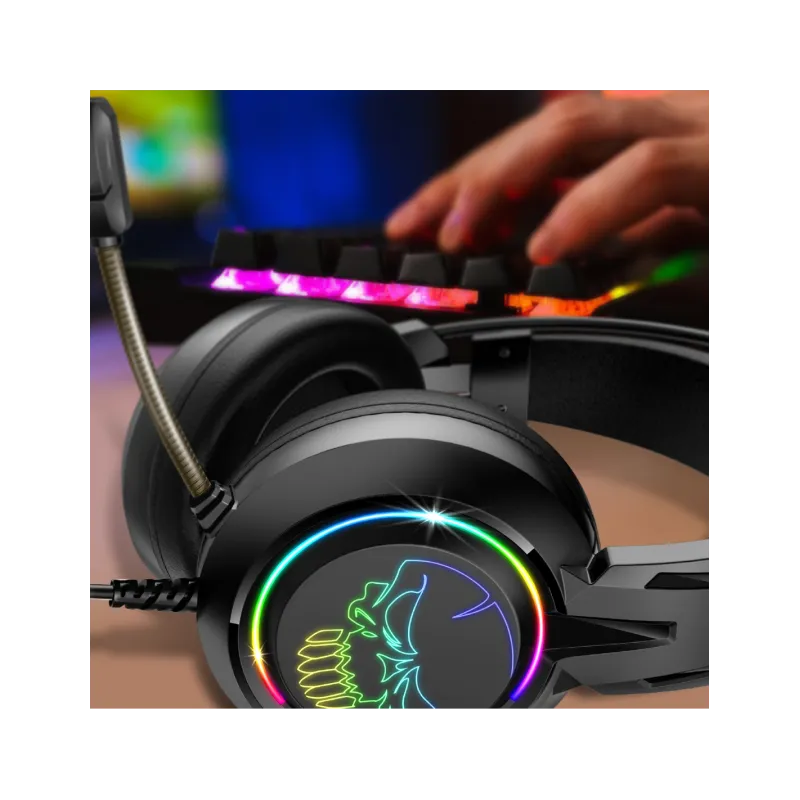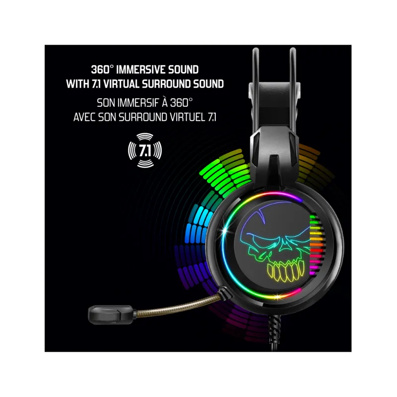 RETROILUMINACIÓN RGB: Una vez enchufados, los auriculares se iluminan y ofrecen una retroiluminación rainbow rgb de ultra diseño de sus auriculares y skull spirit. ¡un look de gamer ultra moderno para sublimar tu configuración!