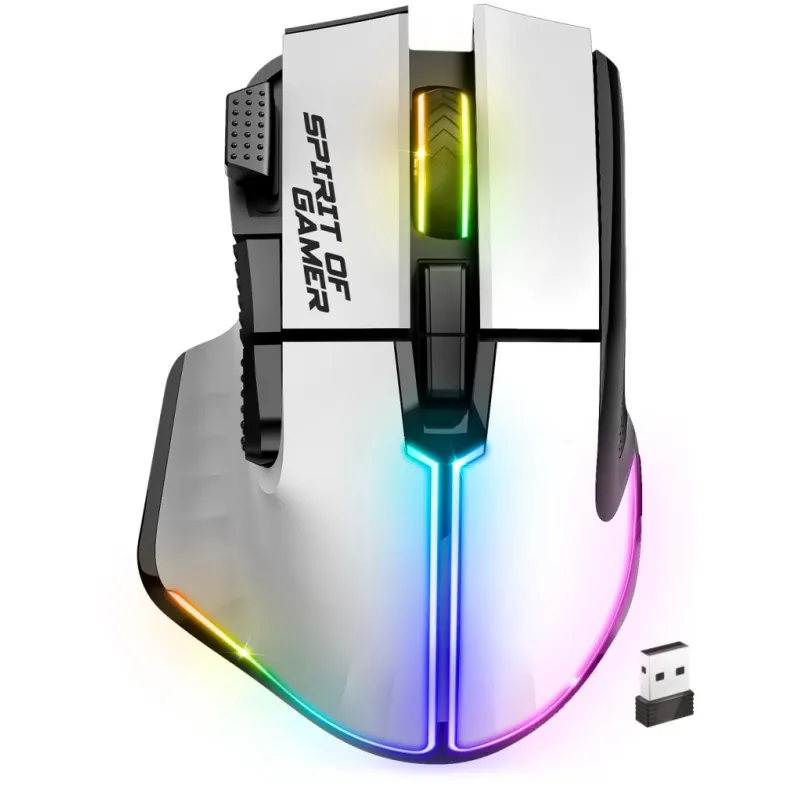 Spirit of Gamer PRO M5 ARTIC WIRELESS Ratón Gaming Inalámbrico RGB 8000DPI Blanco