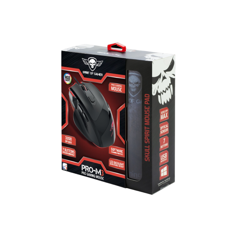 MOVIMIENTOS SUAVES: su alfombrilla de ratón skull spirit incluida se adaptará a su ratón. su diseño de goma de 3 mm de grosor ofrece una gran comodidad para largas sesiones de juego. seguro que el pack pro-m3 se convertirá rápidamente en tu mejor aliado.