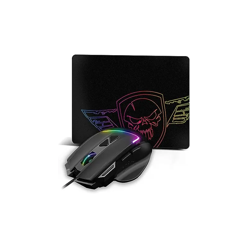UN RATÓN Y UNA ALFOMBRILLA QUE TE DAN LA MÁXIMA PRECISIÓN Y COMODIDAD EN TUS JUEGOS: ¿Quieres un ratón y una alfombrilla que te permitan jugar con más precisión, velocidad y comodidad en tus juegos favoritos? ¿Que se adapten a tu mano, a tu estilo y a tu juego? Entonces este producto es para ti. Te ofrecen una experiencia de juego óptima y personalizable. El ratón tiene un sensor óptico HD que te ofrece una resolución personalizable de hasta 7200 DPI, una aceleración de 20 g y una detección de velocidad de movimiento de hasta 60 ips. La alfombrilla tiene un diseño RGB, una textura suave y antideslizante, unas dimensiones de 28,5 x 19 cm y un grosor de 3 mm.