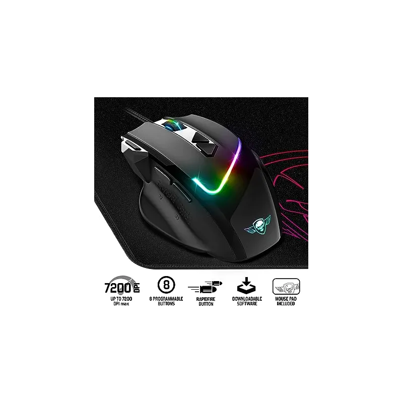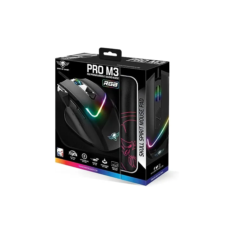 Spirit of Gamer S-PM3RGB PRO M3 RGB 7200DPI Negro + Alfombrilla