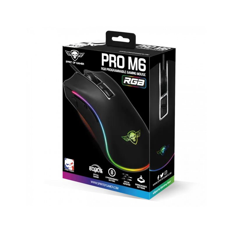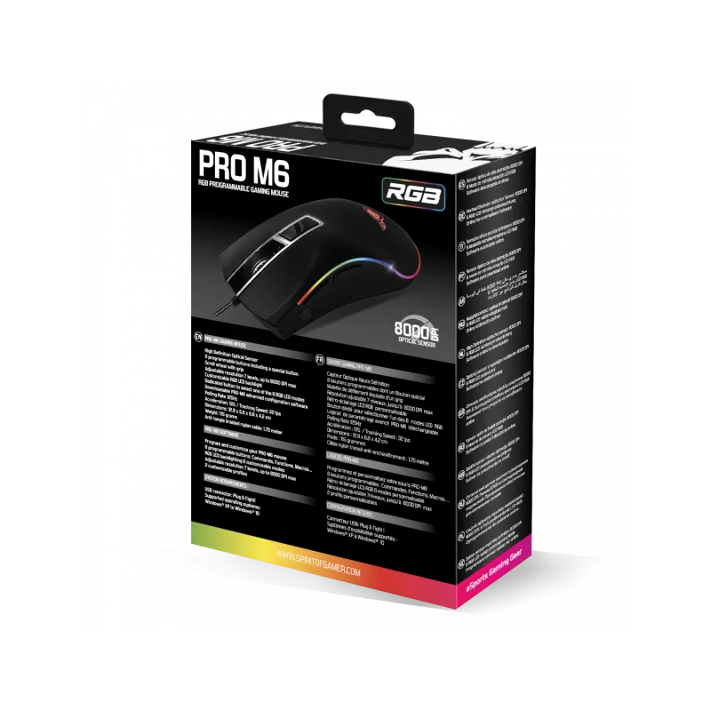 MACROS PROGRAMABLES: un verdadero compañero de juego, el ratón pro-m6 le permitirá guardar hasta 2 perfiles gracias a su software dedicado. este último le permitirá gestionar todos los ajustes del ratón, desde efectos de luz rgb hasta la programación de botones gracias a su editor de macro...