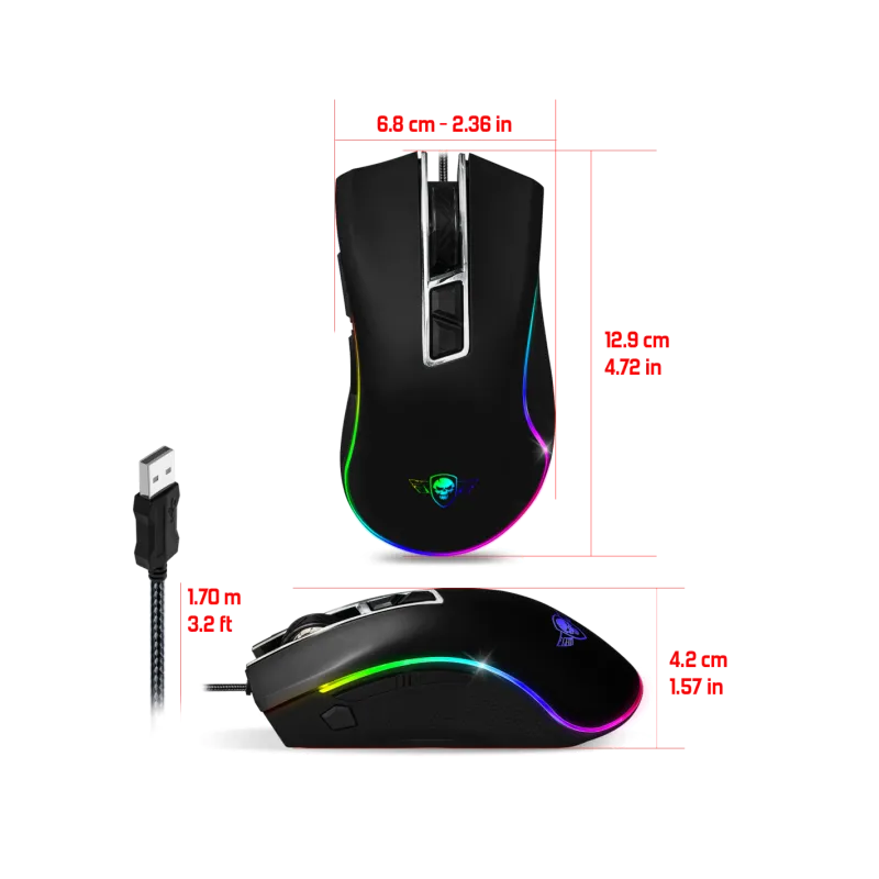LUZ RGB: podrá personalizar el ratón según sus deseos, pro-m6 incluye una retroiluminación rgb personalizable. elige el color que más te guste o uno de los 6 efectos rgb predefinidos.
