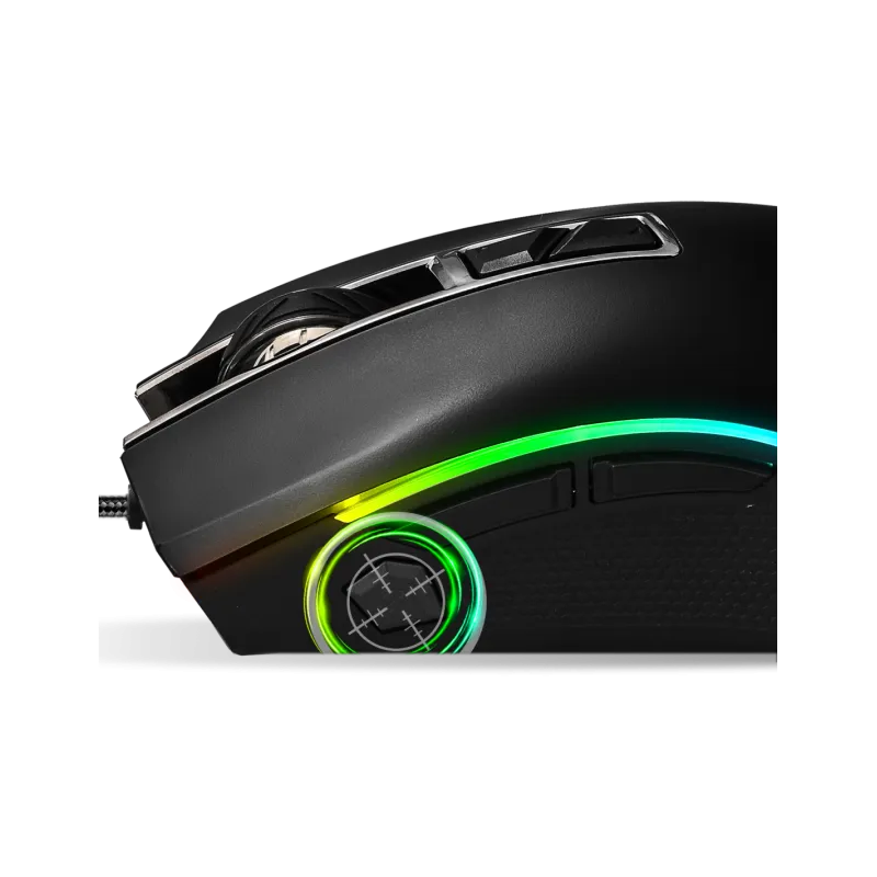 NACIDO PARA MATAR: ponga todas las posibilidades de su lado con el mouse pro-m6 y su sensor óptico de alta definición. su resolución ajustable hasta 8000 dpi le brindará una precisión ideal, por ejemplo quirúrgica :) personalizando uno de los 7 rangos dpi.