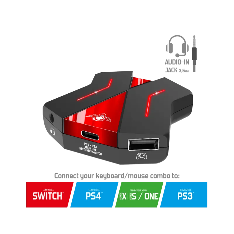 Compatible con Nintendo Switch, PS3, PS4 y XBOX One, es versátil y adecuado para diversas plataformas de juego. Además, el producto está disponible en dos elegantes colores: negro y rojo. El cable de 0,25 m incluido facilita la conexión sin enredos.