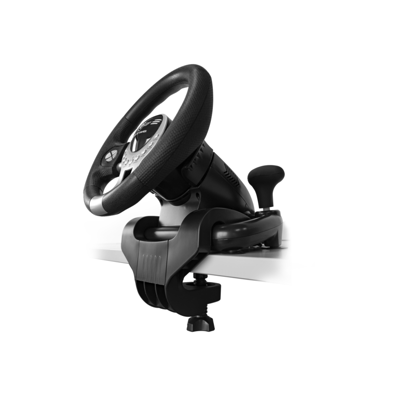 HAZTE TÚ: En la línea de llegada!Para una mejor estabilidad del volante, Race Wheel Pro 2 no está equipado con uno sino con dos sistemas de fixación.7 ventiladores colocados debajo del volante y su soporte de fixación adicional le garantiza una mejor estabilidad del volante y le evitará las salidas de la carretera..