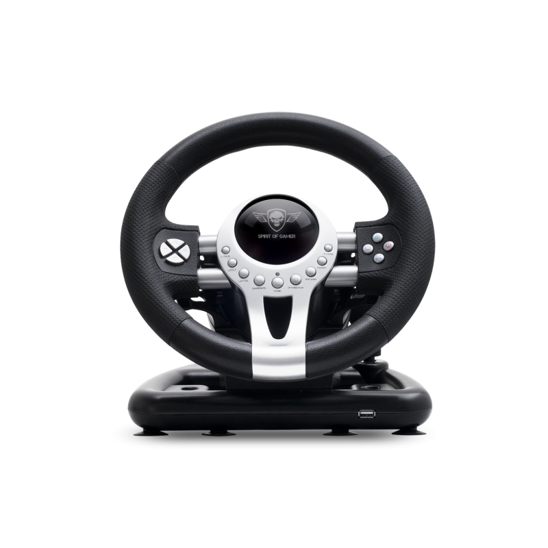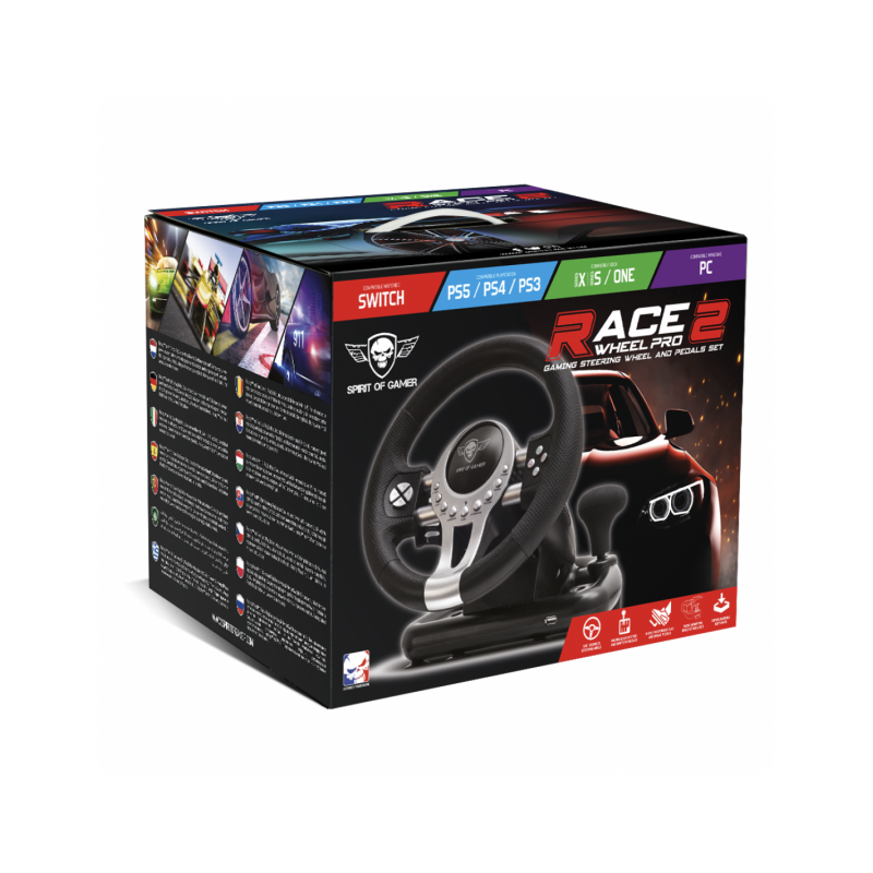 INICIO GRADO: ¿Quieres sentir el bitume debajo de las ruedas, hacer gritar los neumáticos y vivir cada vuelta como si fuera un verdadero piloto de carrera?Spirit of Gamer te ofrece sensaciones de piloto no tan virtuales!Para los aficionados a las carreras de todo tipo, Race Wheel Pro 2 ofrece un paquete de control multiplataforma compatible: Nintendo Switch, PlayStation 4, PlayStation 3, Xbox Series X, Xbox One y PC.