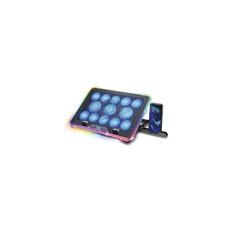 Base de Refrigeración Spirit Of Gamer SOG-VE1300RGB con 13 ventiladores, pantalla LCD incorporada, ajuste de altura y soporte para smartphone