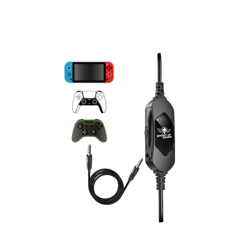 VERSATILIDAD SIN LÍMITES: No importa tu plataforma de juego, el casco SPIRIT OF GAMER es tu aliado perfecto. Compatible con todas las consolas actuales como Nintendo Switch, PlayStation 4, PlayStation 5, XBOX Serie S, XBOX Serie X y XBOX One, también puedes conectarlo a tu PC o smartphone gracias a sus dos tipos de conexiones: cable USB y adaptador de consolas Jack. Juega donde quieras, cuando quieras, sin complicaciones.