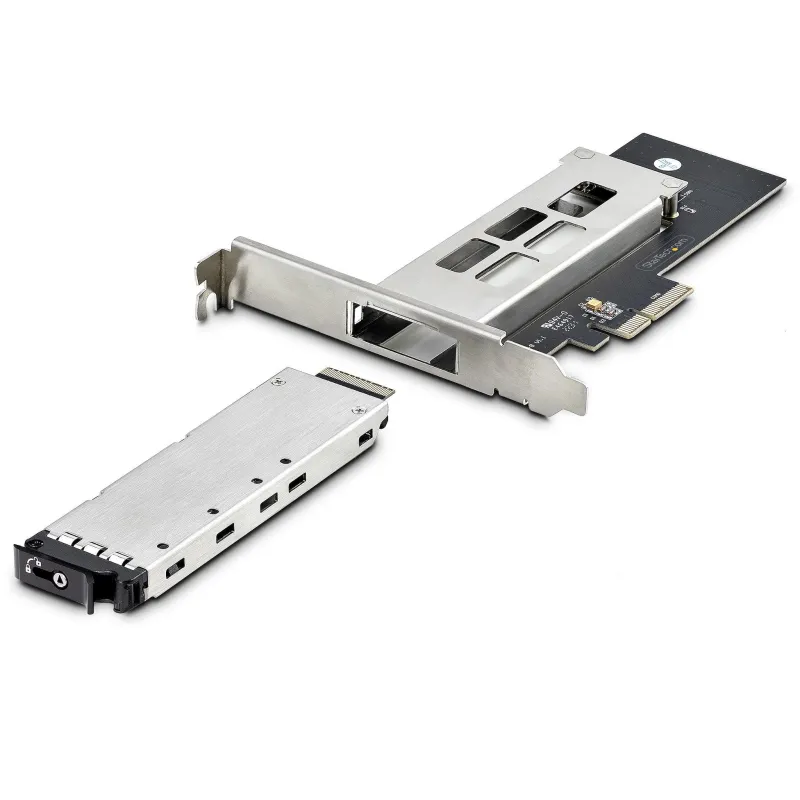 Adaptador de Almacenamiento Startech M2-REMOVABLE-PCIE-N1 con interfaz PCIe 4.0, tasa de transferencia de 64 Gbit/s y soporte hot-swap para PC