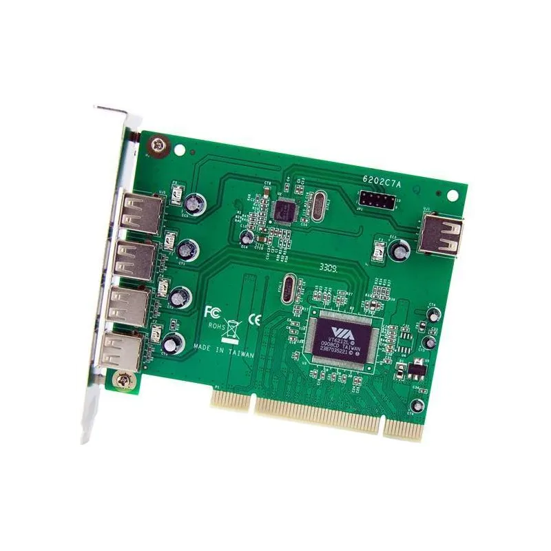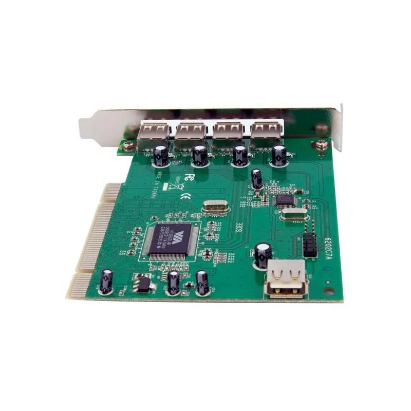 CONEXIONES MULTIPROPÓSITO: Con una interfaz de host PCI/PCI-X y cuatro puertos USB 2.0, junto con un puerto USB 2.0 interno adicional, la versatilidad de conexión es insuperable. Estos puertos permiten conectar múltiples dispositivos simultáneamente, lo que facilita el manejo de una gran cantidad de periféricos sin comprometer la velocidad o la eficiencia. La compatibilidad con la tarjeta de expansión PCI 2.2 asegura que se puede integrar fácilmente en una variedad de sistemas, ofreciendo una solución flexible y adaptable para diversas necesidades.