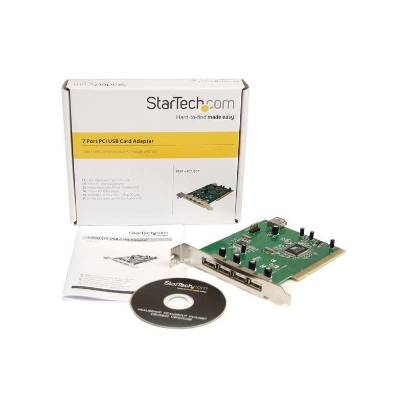 INCORPORE 7 PUERTOS USB 2.0 A SU PC A TRAVÉS DE UNA RANURA PCI: Esta tarjeta PCI USB permite añadir siete puertos USB 2.0 (1 USB A interno Hembra, 2 USB internos en el cabezal de la placa base, y 4 USB A Hembra externos) a su PC equipada con PCI. La tarjeta PCI USB 2.0 constituye una solución versátil que permite agregar conexiones USB 2.0 sin necesidad de actualizar la placa base del sistema. Es una solución todo-en-uno ya que soporta conexiones de dispositivos USB 2.0 con velocidades de transferencia de datos de hasta 480Mbps, y es retrocompatible con dispositivos USB 1.1 (tasa de transferencia máx. de 12Mbps), permitiendo conectar cualquier dispositivo USB al ordenador sin preocuparse por cuestiones de compatibilidad. Diseñada y fabricada para brindar prestaciones USB duraderas, la tarjeta adaptadora cuenta con el respaldo del soporte técnico gratuito de por vida de StarTech.com.