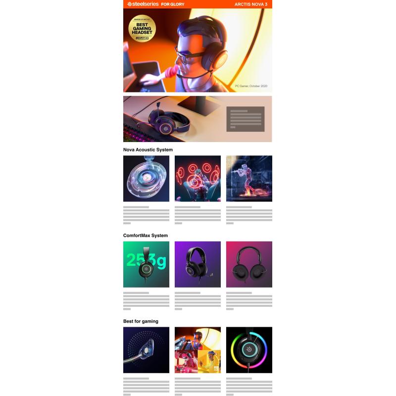 SISTEMA COMFORTMAX: Luce bien y siéntete bien, sin límites. El Arctis Nova 3 está diseñado para adaptarse a cualquier cabeza, con una construcción duradera y ligera y 4 puntos de ajuste. La banda elástica distribuye el peso de manera uniforme.