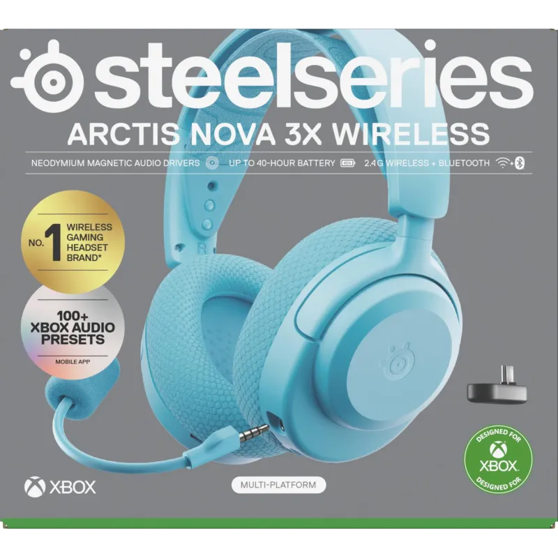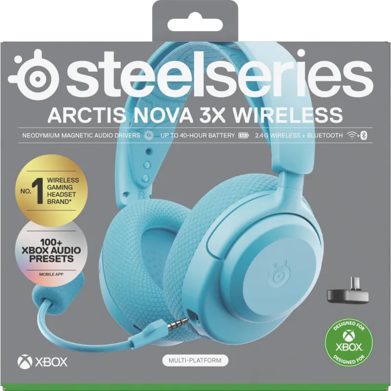 Auriculares Steelseries Arctis Nova 3X Aqua con bluetooth 5.3, cancelación de ruido del micrófono, audio espacial y compatibilidad multiplataforma