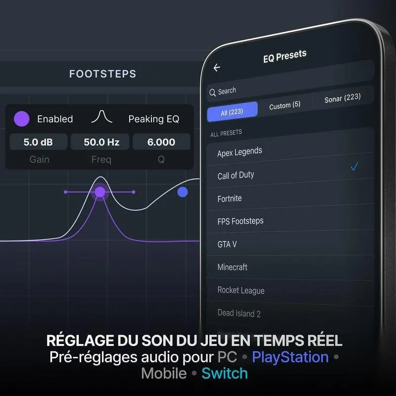 • Audio dual real: juego por 2,4 GHz y móvil por Bluetooth 5.0 sin estar cambiando de dispositivo.