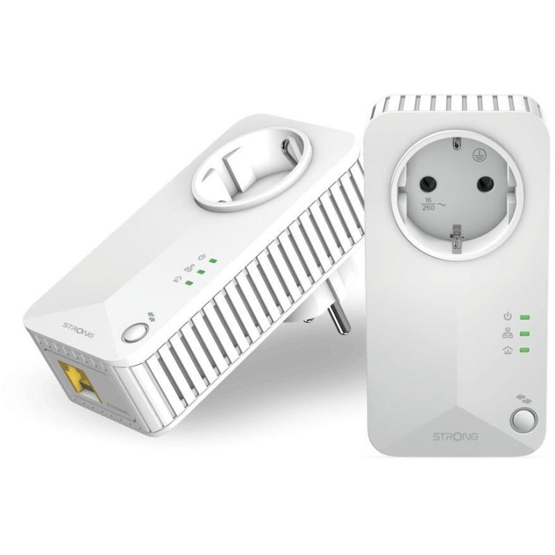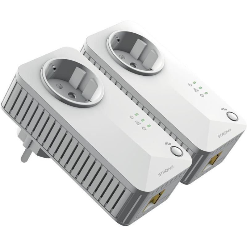 PLC Strong Powerline 600 Duo conexión estable de hasta 600 Mbps fácil instalación Plug & Play seguridad AES y enchufe integrado, para el hogar