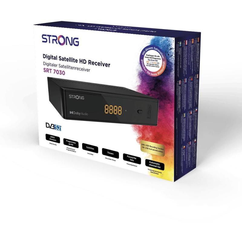 DISFRUTA DE TU EXPERIENCIA TELEVISIVA: Disfruta de tu experiencia televisiva con este receptor de satélite digital de alta definición SRT 7030. El manejo sencillo, el menú amigable para el usuario y las funciones convenientes hacen del receptor un socio confiable para tu entretenimiento en casa. El puerto USB integrado te permite grabar programas de televisión y reproducir archivos directamente desde un dispositivo de almacenamiento USB externo. Además, puedes ver televisión digital y escuchar radio Free-To-Air vía satélite. El receptor también destaca por muchas otras características útiles, como la búsqueda rápida de canales, listas de favoritos para la clasificación individual de programas de televisión y radio, reserva de eventos directamente desde la Guía Electrónica de Programas (EPG), teletexto y más, que son estándar para un receptor STRONG.