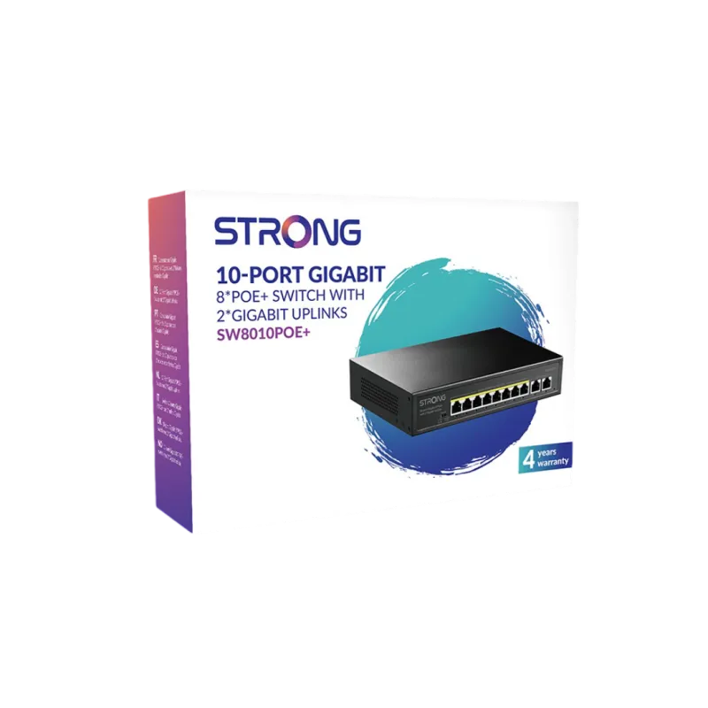 Strong SW8010POE+ con 8x Puertos Gigabit POE y 2x Puertos de Enlace Ascendente Gigabit