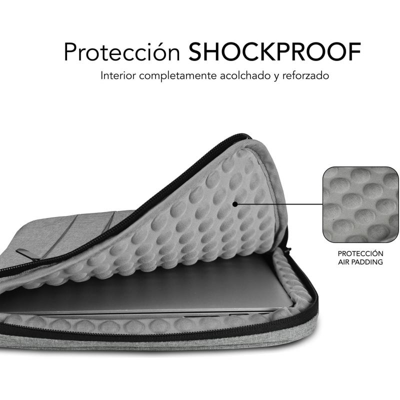 Funda Subblim Air Padding 360 Elegante funda Gris Claro para Portátiles hasta 15.6" Resistente a golpes, suciedad y salpicaduras.