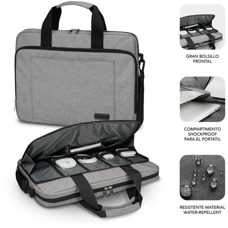 Maletín Subblim Air Padding compatible con portátiles de hasta 14" Diseño monocromo en Gris resistente al agua con 3 compartimentos.