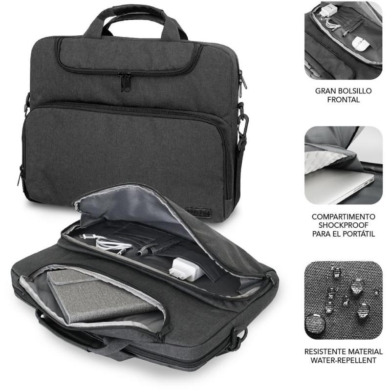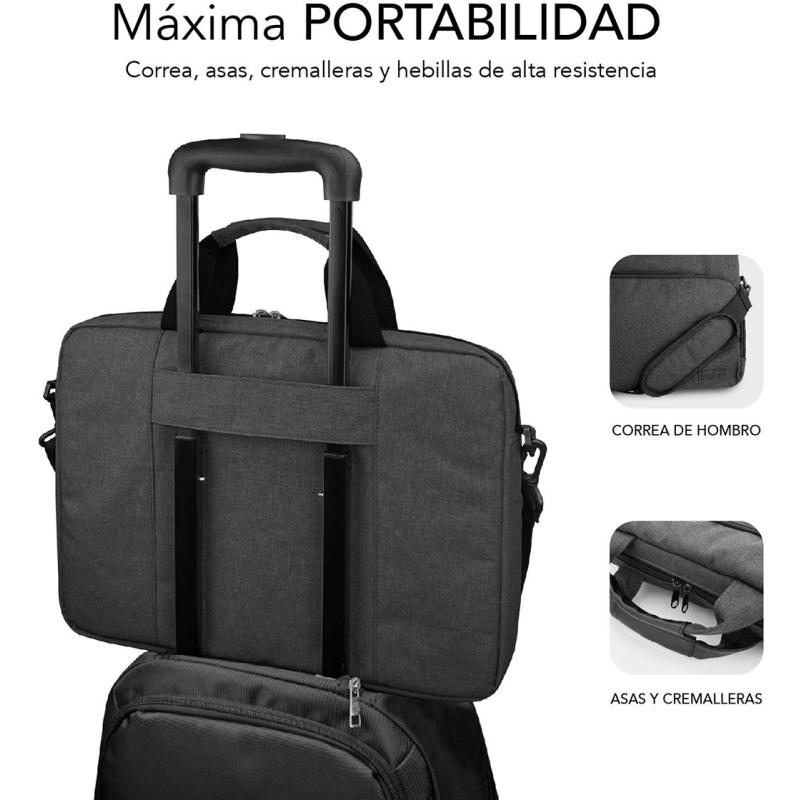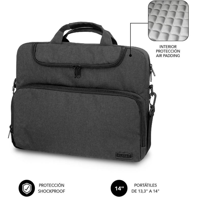 Maletín Subblim Air Padding compatible con portátiles de hasta 14" Diseño monocromo Gris Oscuro,resistente al agua con 3 compartimentos