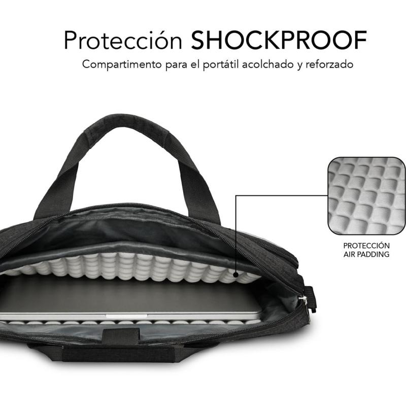 Maletín Subblim Air Padding compatible con portátiles de hasta 14" Diseño monocromo, resistente al agua con 3 compartimentos.