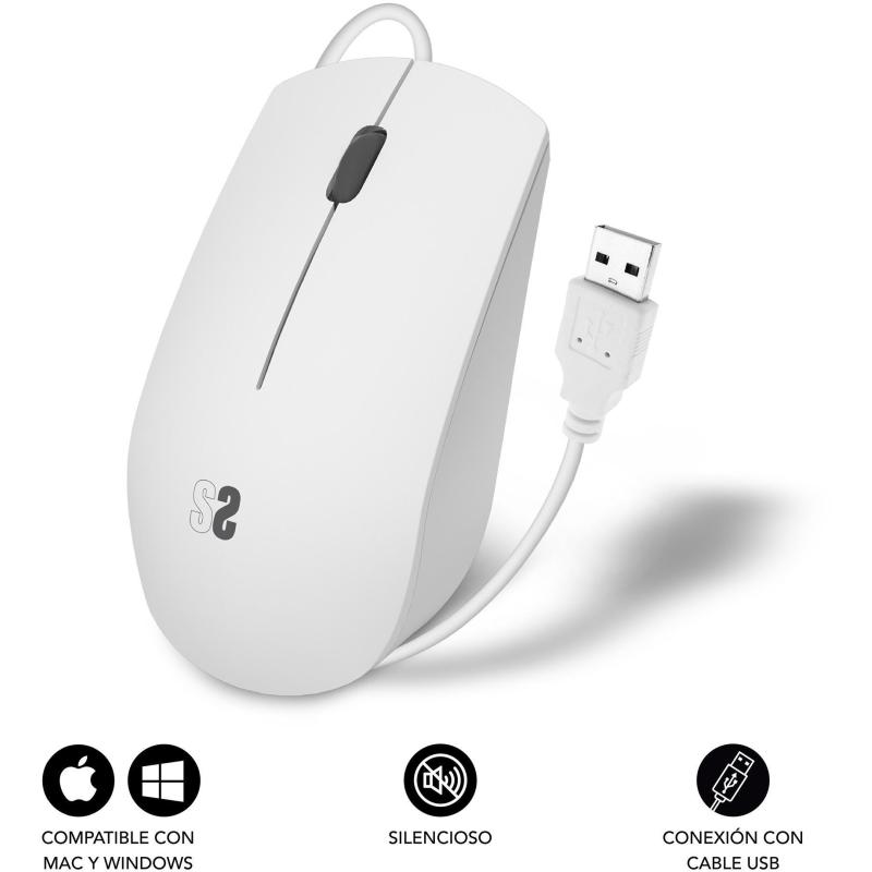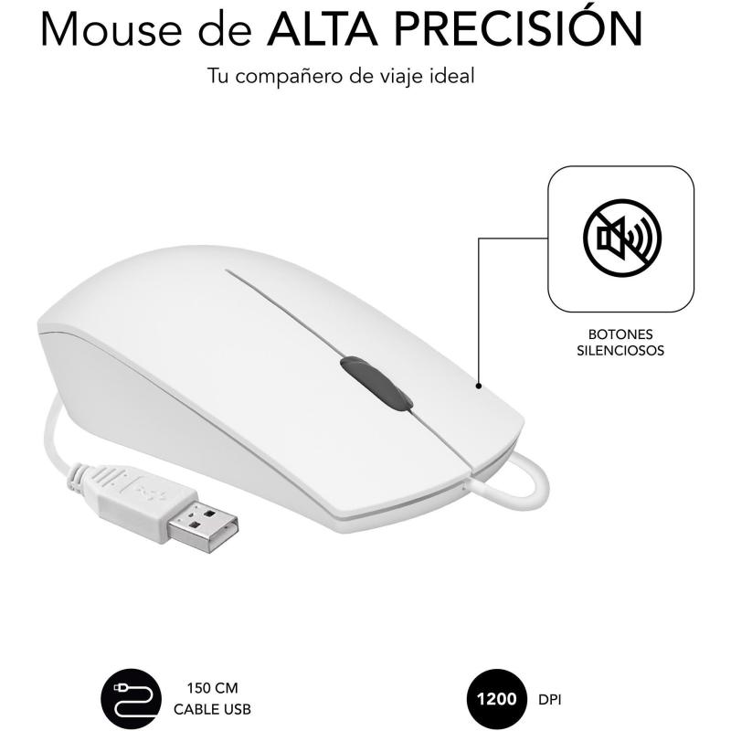 Ratón Subblim Business Silencioso con cable USB Diseño ergonómico ambidextro 1200 DPI ligero y compacto. Blanco