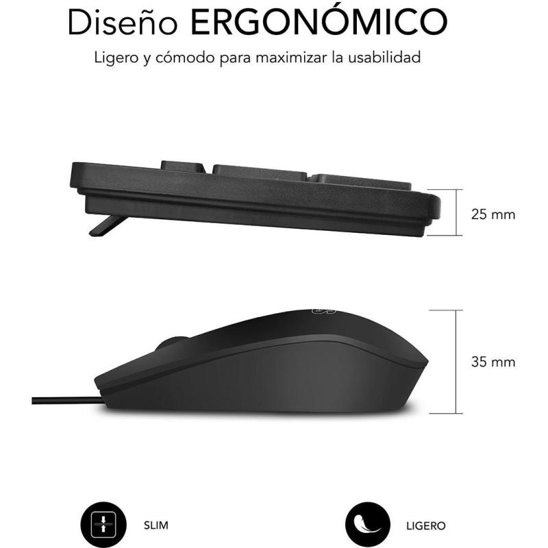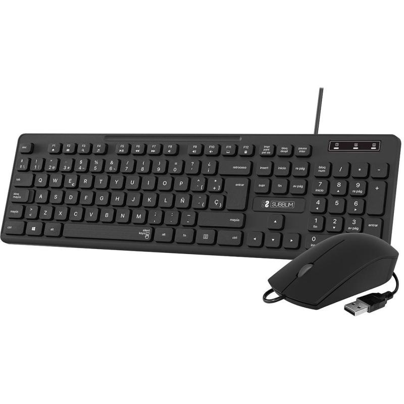 KIT de Teclado y Ratón Subblim Business Slim diseño ergonómico, teclas silenciosas, conectividad USB y Ratón óptico 1200 DPI Negro