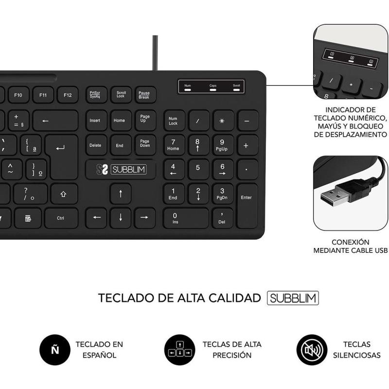 KIT de Teclado y Ratón Subblim Business Slim diseño ergonómico, teclas silenciosas, conectividad USB y Ratón óptico 1200 DPI